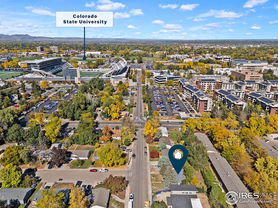 Come put your creativity & style to this mid-town Fort Collins charmer in the amazing Sheeley neighborhood. Centrally located, this home allows easy access to CSU campus and Canvas Field, Spring Creek Trail, Old Town, Midtown and so much more. This home puts you in the center or it all - shopping, restaurants, entertainment, trails, parks & so much more. Home backs to the Aggie Village Family Housing complex. Quintessential 1959 ranch floorplan with 4 bedrooms plus an office, 2 bathrooms, 1 car garage with mature landscaping. Beautiful mid-century stone fireplace in the living room and real wood floors through most of the main floor. Finished basement with family room 2 bedrooms, 1 bathroom & laundry. New exterior paint. Prime opportunity to undertake a full remodel or turn it into a solid investment property for your portfolio. Pre inspection report is provided, and many items have been addressed by the seller in preparation for a new owner.