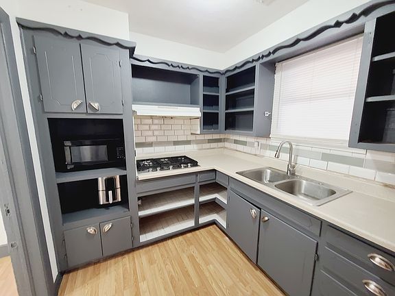 Lovely kitchen with lots of cabinets and storage. Dishwasher. Double sink. Gas cooktop. No oven. We do supply an airfryer and microwave oven.