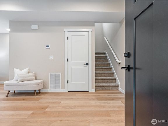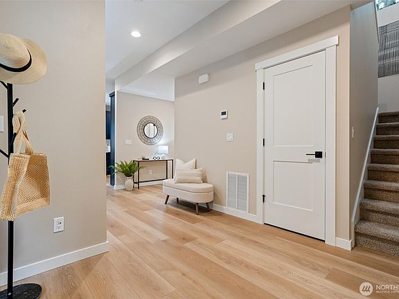 Stunning new construction on .61 acres featuring 3 bedrooms, a dedicated office, and an upstairs family room with partial bay views and glimpses of the Olympics on clear days. The primary suite offers radiant heated floors, custom tile, and elegant finishes. Quartz countertops, custom cabinetry, specialty lighting, and night lights in every room add comfort and style. Mud room off the back patio, plus ample storage throughout. Cedar and stone exterior accents, dusk-to-dawn lighting, and a convenient location near the freeway and shopping complete this modern, private retreat.