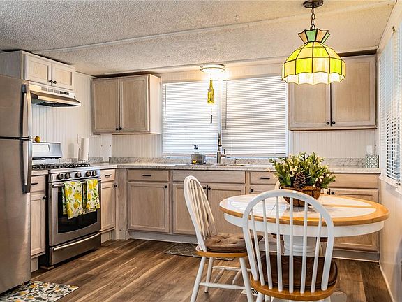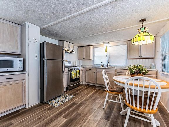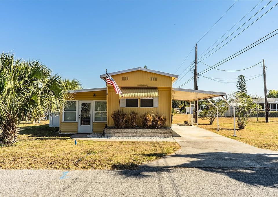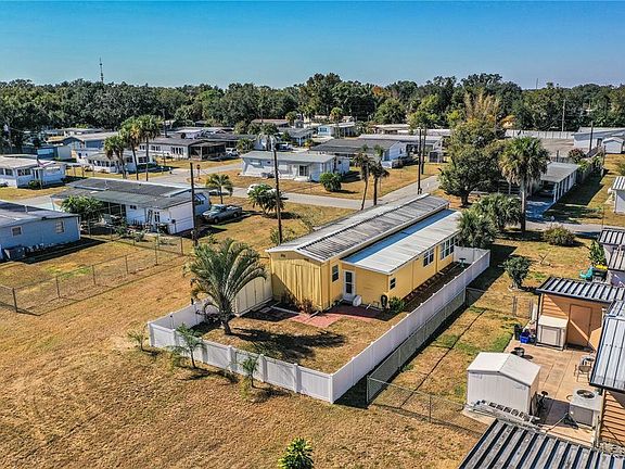 Beautifully Renovated 2 Bedroom / 2 Bathroom Home in Central Florida – Land Owned, 55+ Community. Located in the heart of Central Florida, this wonderfully renovated 2-bed/2-bath mobile home sits on an oversized lot and is completely move-in ready. Bright, airy, and thoughtfully updated, this home offers comfort, style, and a relaxed Florida lifestyle. The updated kitchen features ample cabinetry and storage, along with enough space for a cozy kitchenette; stove is natural gas. Both bathrooms have been tastefully redesigned with new cabinets, stone countertops, modern lighting, and more. You’ll fall in love with the stunning sun porch—surrounded by windows and filled with natural light—creating the perfect space to unwind or entertain. The home is being sold fully furnished, to include a large smart t.v, making your transition effortless. Outside, the partially fenced yard, complete with PVC privacy panels, provides a great outdoor/entertaining area; one of the few privacy fences in the community. Storage is abundant, with both indoor options and a large exterior storage room that includes a washer and dryer (both stay) and plenty of additional space, along with a backyard shed. This active 55+ community has no lot lease—you own the land! Enjoy amenities such as a gated entrance, clubhouse, fishing dock, and shuffleboard court. Move-in ready, beautifully updated, and located in a friendly community—this home has it all!