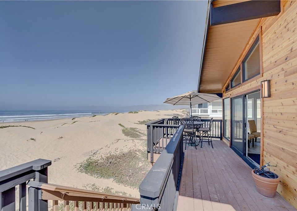 Owner may carry a note and will consider a 50/50 partnership and a buyer with 50 percent down. This Beachfront Beauty offers never-ending views of the beautiful Central California Coastline. Uniquely situated on a larger 3500 square foot corner lot which has public beach access and outstanding views. Thoughtful building design inside offers unobstructed ocean & beach views from the dining room, living room & kitchen. The updated, centrally located kitchen & dining room are open, warm & functional and a half bath. Vaulted open beams ceilings create a unique and cozy space for family and friend gatherings around the fireplace. The huge living room windows and slider doors open to the ocean/beach and the design offers unobstructed views from Avila Beach to Point Sal. Take in the beach life and west coast sunsets. Watch the rolling waves dance and dolphins and whales play and stroll the coastline with direct beach access from the upper-level exterior deck or lower level. This is the ultimate in Central Coast living and lifestyle. Walk the beach into Pismo. The large private main suite is on the upper level and offers a private north facing deck, a full private bath, and a large walk-in closet. The lower level offers three additional large bedrooms and one full bath along with a full laundry room/sand room area. Two west-facing bedrooms have direct beach access and all bedrooms boast large closets. Fully furnished and ready for current future vacationers. One of the best vacation rentals at Oceano Beach.Plus an over-sized garage w/storage. This is lovely home is a current licensed turnkey vacation rental with exceptional net income of over 120k+ per year consistently. 2024 YTD Income was approximately $131,000. This Licensed Vacation Rental managed by BeachBum Vacation Rentals in Pismo Beach.