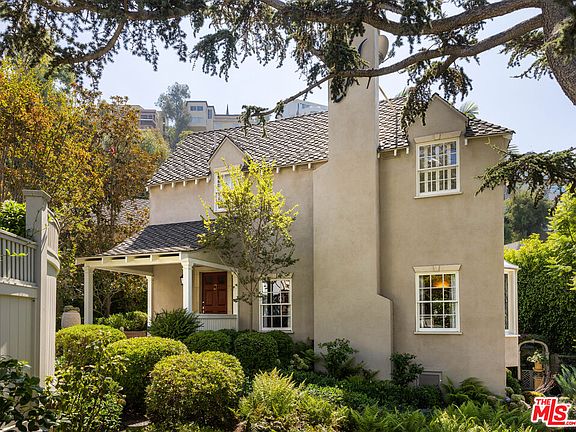 Tucked behind gates, on a quiet cul-de-sac, this enchanting English style home is a true hidden gem, brimming with period details and timeless elegance. Just moments from Sunset Boulevard, this three-bedroom, 2.5 bath residence is a romantic blend of old-world craftsmanship and modern luxury. Inside, sunlight dances through leaded glass windows, filling the living room with a golden glow. The formal dining room, adorned with classic wainscoting, whispers of elegant dinners and candlelit conversations. The chef's kitchen is warm and whimsical, with its rich woodwork and clever detailing reminiscent of a handcrafted teak boat, full of character and soul. Upstairs, the primary suite is a dreamy retreat, complete with a fireplace, spa-like bath and a bedroom converted into an expansive walk-in closet. A second bedroom with ensuite bath and steam shower offers a cozy haven for guests or loved ones.Every window offers a glimpse of the lush gardens that wrap the home in beauty and tranquility, designed by a Getty Villa landscape architect and once featured onHGTV's Landscaper's Challenge; you are transported to a bygone era where glamour and garden parties once ruled the day. Fragrant blooms, manicured hedges, and winding paths create a private, storybook setting for morning coffee or twilight gatherings under the stars. Fully re-plumbed, updated, and thoughtfully reimagined to retain its 1930s character, this is more than a home, it's a love letter to Old Hollywood, where classic beauty meets garden serenity in one of L.A.'s most iconic neighborhoods.