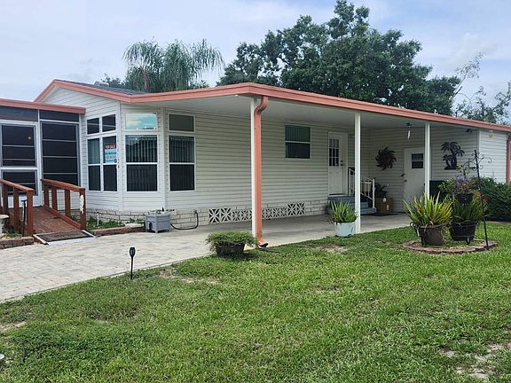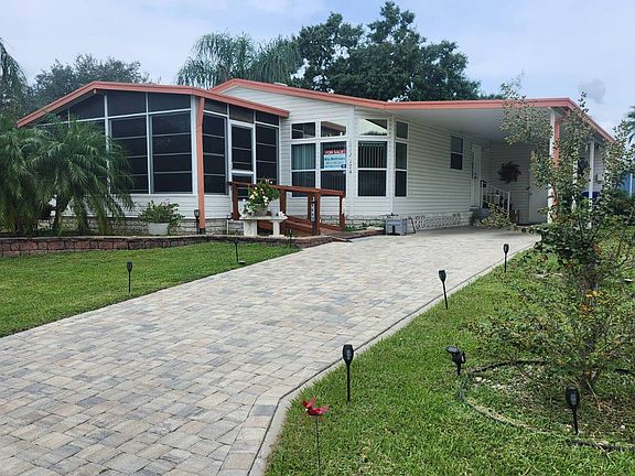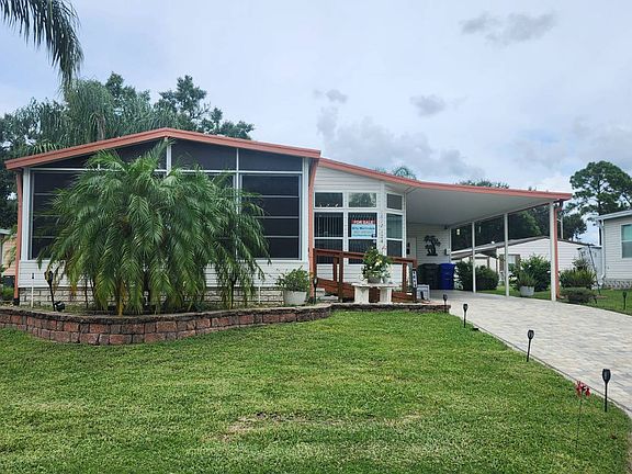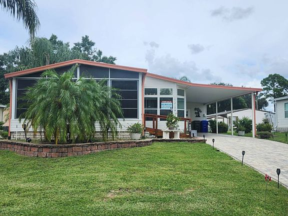INCREDIBLE! This 1998, 2/2 checks all the boxes!! Unique touches make this house feel like a home. From the first step you are met with beautiful tile through out the main area. Chef's kitchen with ample space and beautiful white cabinetry. The stone walls in this space make a wonderful contrast. The dining area boast tons of natural light with large floor to ceiling windows across the front. If you enjoy outdoor space then the lanai is the place for you! The living area is open with an intricate design laid into the tile! Past the INDOOR laundry area are the bedrooms and hall bath. The master bedroom is large with a double walk-in closet, the master bath is spacious with the same stone backdrop as in the kitchen is above the vanity giving it a cozy vibe. Walk-in shower with a seat! The guest bedroom comfortably fits a queen size bed, large closet with sliding doors. Ceiling fans, seamless walls and textured ceiling throughout. See you soon! Located in the very desirable 55+ Foxwood Village, a Spectrum Community with 250+ Channels and 4 mbps high speed internet. Foxwood Village is an active 55 community that is pet friendly and offers great amenities like: Clubhouse with too many Social Activities to mention, Dog Park, Exercise Room, Pickle Ball Court, Corn Hole, Putting Green, Firepit, Heated Pool, Tiki Huts, Rec Room, Hot Tub, Showers, Dry Sauna, Billiards/Game room, Security Cameras, Social Clubs! Conveniently located near shopping, restaurants, medical facilities and just a short drive to popular Florida attractions! Home sold 'As Is' without warranties or guarantees by seller and/or Broker. All listing information is deemed reliable but not guaranteed and should be independently verified through personal inspection and/or by appropriate professionals. The buyer assumes full responsibility for obtaining all current rates of lot rent, fees, or pass-on costs associated with the community, park, or home from the community/park manager.