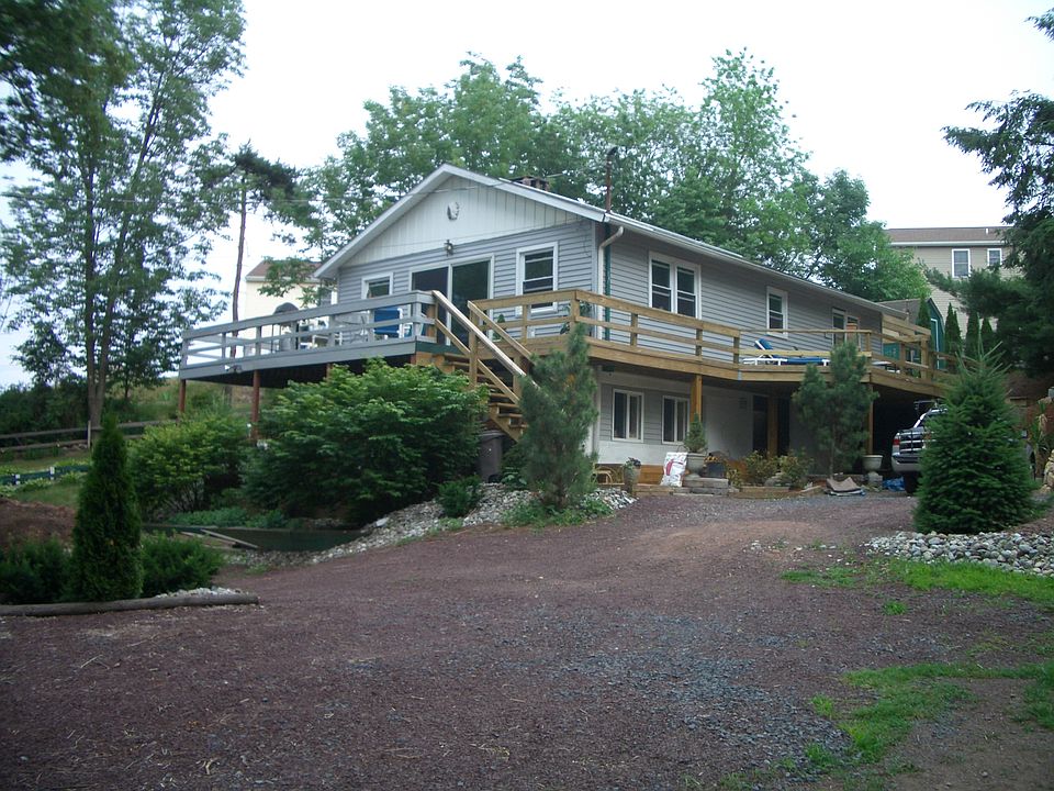 This 3 bdrm, 1 bath ranch home offers everything & the kitchen sink, one floor living, master bdrm with full bath, 2 bdrms on opposite side of home w additional full bath, 26 handle kitchen w beautiful tiled floors, dining rm w double glass doors to large deck w views of the mountains in the background, large L.R. with coat closet