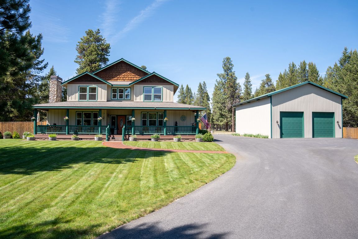 This tranquil La Pine farmhouse offers modern comfort and rustic charm, set on a spacious, manicured lot surrounded by towering pines. The beautifully designed two-story home features an inviting open-concept layout, a cozy wood-burning fireplace, and a covered patio with a beautiful fenced backyard. A large detached shop provides ample storage ...