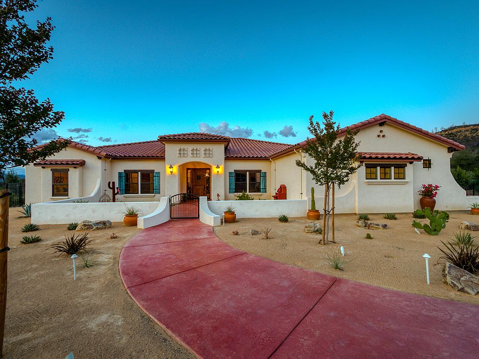 Stunning Hacienda style retreat in Foxwood Estates. The layout is bright and open with 3 spacious bedrooms plus a large office/den. The great room features beautiful beams and a gorgeous fireplace. This impeccable custom home has everything you'd expect in a high end custom build! Soaring 10 & 12 ft ceilings, 8 ft doors, hand textured walls, custom cabinetry throughout including extensive built ins. 3 car garage with built in storage plus a separate oversized 2 car garage tall enough for a lift and even has it's own half bath! Complete with a gated entry, solar and breathtaking views! See amenities list for full list of upgrades and features.