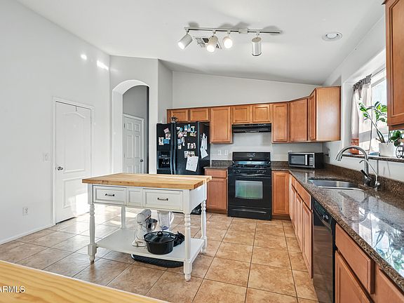 Motivated sellers offering $5,000 in concessions! Move-in ready with new A/C (2021), fresh paint, updated flooring, and a brand-new gas range! The open kitchen features granite counters, black appliances, and island (included!). Spacious living and dining area that opens to a covered patio with porch swing and huge backyard with RV gate & cement pad. Primary suite has double sinks & walk-in closet. Plus a 2-car garage with service door & water softener. Convenient Goodyear location near shopping, dining & Spring Training.