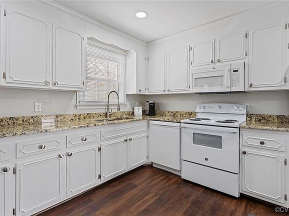 Stylish brick ranch home has been updated and is move in ready. The abundant light from the living room picture window shows off the beautifully refinished hardwood floors. The eat in kitchen has a fresh modern look with granite countertops and white cabinetry and appliances. The half bath and laundry area are conveniently located at the rear door leading to a large deck and fenced yard. Enjoy the coziness and privacy of the den with white washed brick fireplace with gas insert. Three bedrooms and a shared full bath complete this lovely home.
