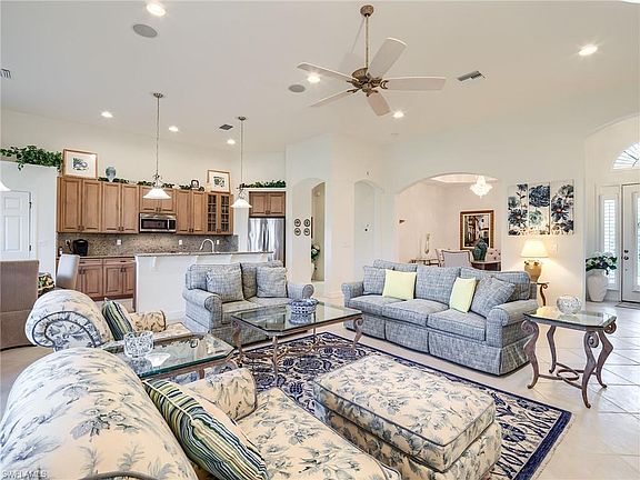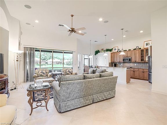 Impeccably maintained home located in the very desirable north Naples gated community of Delasol. Charming and spacious 3 bedroom plus den, 3 full bath residence includes a 3-car attached garage and extended driveway situated on a quiet and peaceful oversized lot with water view. Open concept design offers a split floor plan, with tile on the diagonal throughout the main living areas. Features include: new roof/gutters (2019), newer A/C & water heater (2018), impact resistant windows & Storm Smart screens, nature stone flooring on lanai, granite kitchen countertops with stainless steel appliances, and much more. Conveniently located west of 75, minutes from award winning beaches, shopping, restaurants, RSW airport, and within an A-Rated school district. Low HOA fees include amenities such as heated pool, spa, fitness center, playground, tennis/pickleball/ basketball courts and Xfinity internet and cable access.