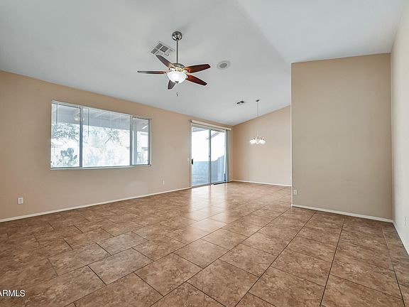 3 bedroom 2 bath home in Wildflower Ranch is available for immediate move in! Home features vaulted ceilings, ceiling fans through out, separate tub and walk in shower in master bath, double sinks in master, his and hers closets in master, tile through out home, and comes with all appliances except washer and dryer. Enjoy the roomy backyard with mature shrubs, cactus and sitting wall area. Home is only a few houses from the children's playground. Home is close to parks, schools, shopping, and highway access. 1 pet will be considered with applicable $25 monthly pet rent.