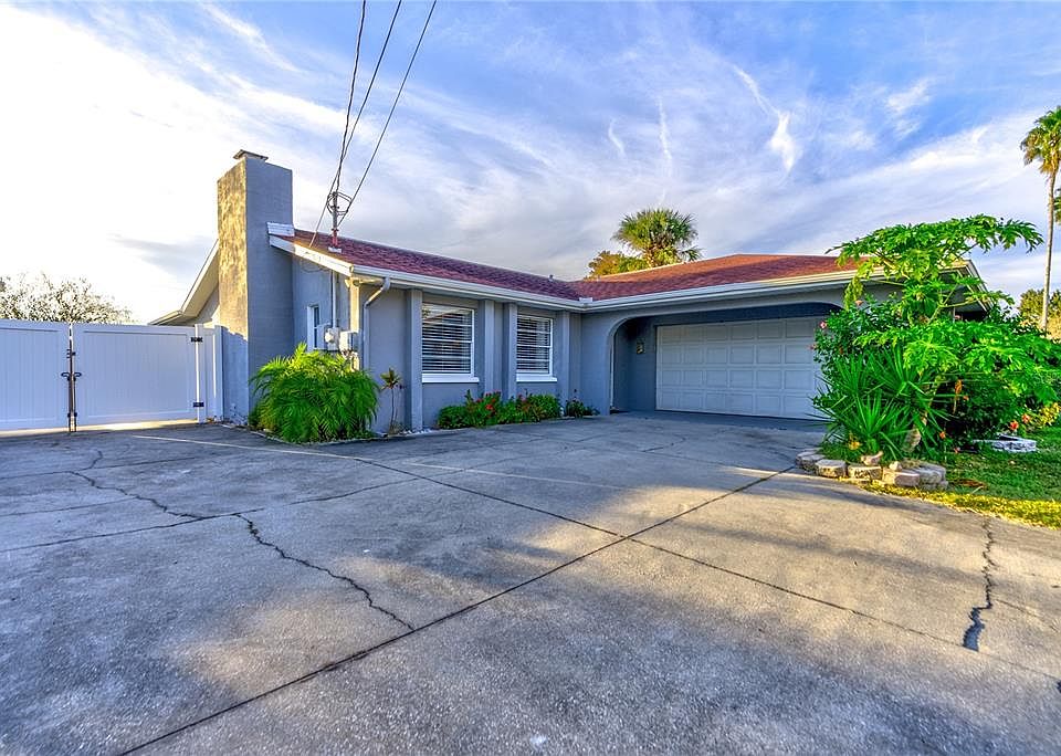 Welcome to this wonderful 3-bedroom, 2-bathroom residence, boasting 1,481 sqft of living space. This home welcomes you with an airy open concept and a host of phenomenal upgrades. As you step inside, the soaring ceilings immediately capture your attention, creating a spacious atmosphere perfect for entertaining both guests and family. The home features a wood-burning fireplace and recently renovated bathrooms. Brand new solid doors have been installed throughout, offering a touch of modern elegance. Additionally, a state-of-the-art tankless hot water heater with a sediment filter has been added for your convenience. The AC unit was replaced in 2019, and the roof in 2013, providing peace of mind for years to come. The kitchen is enhanced with custom cove lighting, creating an inviting ambiance for culinary endeavors. The oversized two-car garage is a homeowner's dream, complete with workshop cabinetry for all your DIY projects. There's even extra space for parking on the expansive driveway, which extends to the rear of the property. A standout feature of this property is the sprawling backyard, completely fenced for privacy and security. Enjoy the Avocado, banana and papaya trees bearing huge fruit! Don't miss this opportunity to make this wonderful house your new home. Located minutes away from SunWest Beach and park and about 50 minutes from Tampa International Airport.