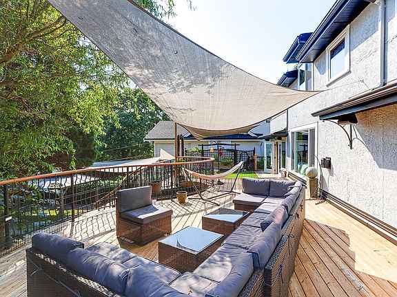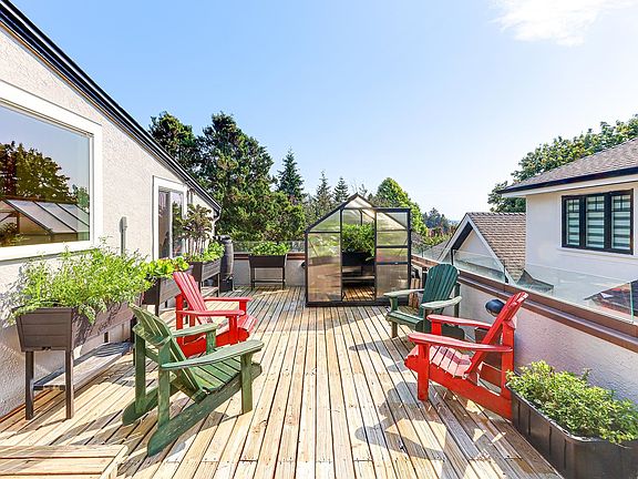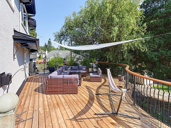 Massive expansive deckPrivate courtyardRooftop deckMature landscapingFlagstone pathsGarden bedsUpdated basement suite