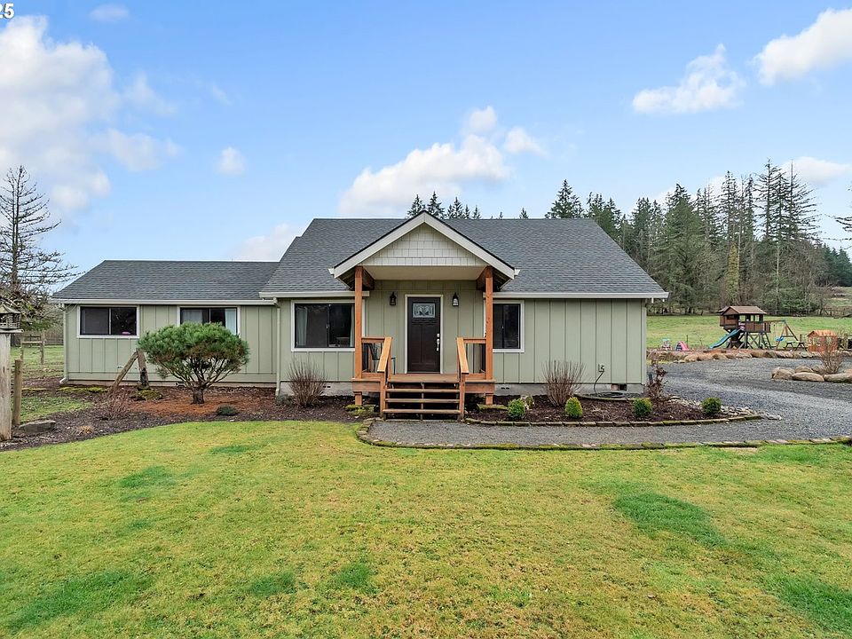 Private country setting on ~6 acres. Recently updated 1872 sf ranch with large shop. Vaulted living area with access to covered patio. Spacious kitchen includes eating bar, stainless steel appliances, and granite counters. Primary bedroom has exterior access and private bath. Two additional bedrooms. Separate laundry room has built-ins and sink. Level fenced and cross-fenced property. Chicken coop, workshop w/ electrical connected, covered RV parking and hay storage. Prime location!