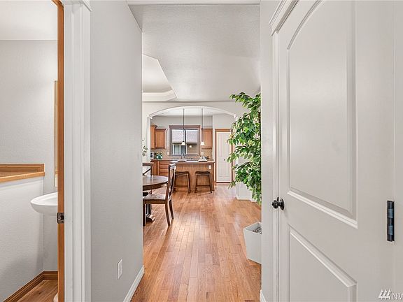 Corner Lot Home available in the Serrano Community/Mill Creek. Tastefully updated home with fresh paint throughout has gleaming hardwood floors from the entry to the Gourmet Kitchen. Main Level features an open concept floor plan with Formal Dining, Kitchen with island, pantry, gas cooking, and SS appliances, and a Living Room with a beautiful gas fireplace. The sliding glass door from the Living Room provides access to the deck and a fully-fenced backyard. Upper Level has a Utility Room with new W/D, Linen Closet, Full Bath, 3 BRs and a Primary Suite. The Primary Suite has vaulted ceilings and a ceiling fan, En Suite with glass block shower and WIC. Close proximity to Ash Way Park and Ride, Alderwood Mall, and Mill Creek Town Center.