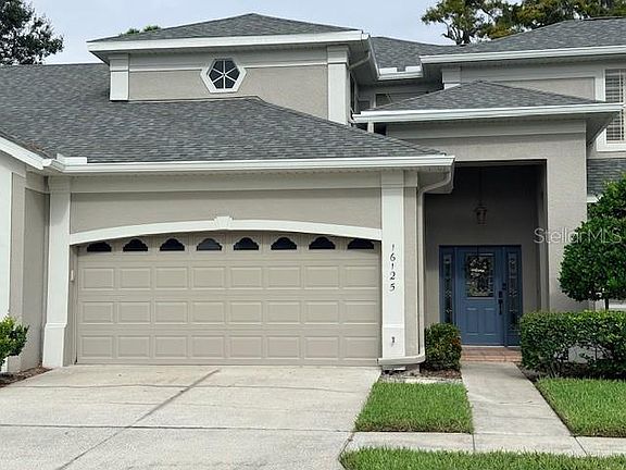 Welcome to Royal Troon Village in The Eagles Golf Community a highly desirable, 24-hour guard-gated neighborhood known for its tranquility and natural beauty. This beautifully maintained two-story villa-style townhouse offers 4 spacious bedrooms, 3.5 baths, and a 2-car garage. Nestled in a peaceful setting, the home features an open split floor plan with soaring vaulted ceilings, a generous living area, full kitchen, and dining space all leading to a serene screened-in patio perfect for relaxing or entertaining. From the moment you arrive, the elegant entrance welcomes you with a beveled glass front door, decorative tile inserts, and stately pillars. The large master suite is located on the first level and includes his-and-her closets, a luxurious master bath with a garden tub, separate shower, and dual vanities. Each bedroom offers ample closet space, and the home includes abundant storage throughout including a massive storage room in the garage. Residents of The Eagles enjoy scenic conservation areas, sparkling ponds and lakes, breathtaking golf course views, and abundant wildlife that enrich the community's charm. Zoned for A-rated schools, and conveniently located near shopping, dining, nightlife, downtown Tampa, Tampa International Airport, and Florida's stunning beaches. Don't miss this opportunity schedule your private showing today!