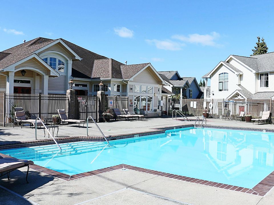 Gorgeous Sonoma Villero condo with fantastic location near I-405, Park & Ride. Two reserved parking spaces a short walk to ground floor end unit. High ceilings, gas fireplace, new paint and blinds, two master suites (1 w/ WIC & 5 piece bath!), open concept in liv/kitch/din, covered porch off one bed. Laundry rm. Wonderful clubhouse w/ pool, hot tub, gym, entertaining area w/ kitchen. Dogs/cats ok w/ restrictions. Security system.