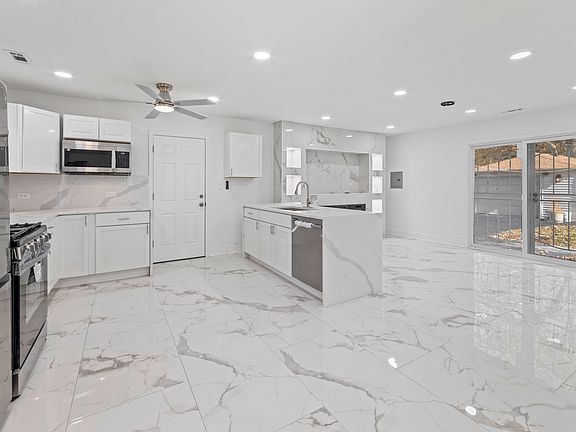Completely Rehabbed Turn-Key Home - Move-In Ready! Step inside this beautifully renovated property featuring brand-new marble tile flooring and a state-of-the-art entertainment system. The stunning white Shaker-style kitchen is outfitted with quartz countertops and all-new stainless steel Samsung appliances, perfect for cooking and hosting in style.Enjoy peace of mind with major upgrades throughout the home, including a brand-new roof, new AC unit, and new furnace-everything designed for comfort and efficiency.Outside, you'll find an oversized fully fenced yard, ideal for gatherings, pets, or future expansion. A detached garage provides extra storage and convenience. This home is truly turn-key with every detail thoughtfully updated. Don't miss out on this modern, move-in-ready gem!