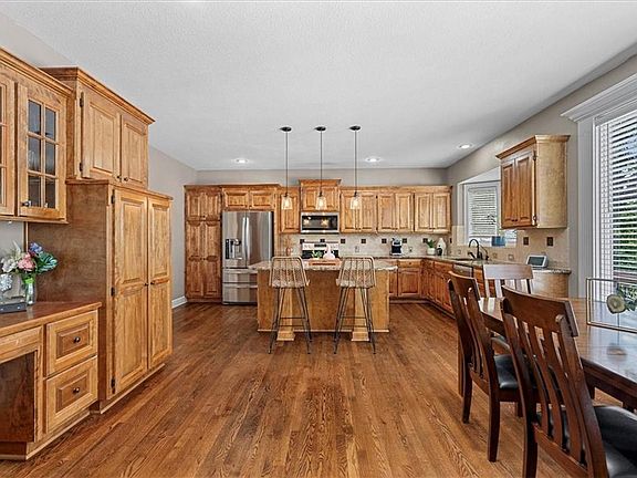 Tucked in one of the most coveted neighborhoods around, this 5-bedroom stunner is the kind of home people dream about. Backed by lush greenspace and peaceful trails, this home offers a rare combination of privacy, scenery, and community vibes. Imagine morning coffee with wildlife sightings, quite evenings on the trails, and the neighborhood pool just a water balloon toss away! Inside, the layout is as smart as it is stylish—YES, there's a 5th bedroom on the MAIN LEVEL, complete with a full bath! Whether it’s for guests, in-laws, or a dreamy home office, this flexible space makes everyday living easier and better. Upstairs, you’ll find spacious bedrooms, but let’s talk about the fun stuff: the sun-drenched sunroom that feels like a retreat, the composite deck and concrete patio perfect for summer BBQs, and the fully finished basement built for epic movie nights or game day parties. There's even a back bar, projector screen, and space for your future pool table! Add in the proximity to all 3 levels of Blue Valley Schools, 69 HWY, and the growing BluHawk Shopping Center, you wouldn't want to be anywhere else!