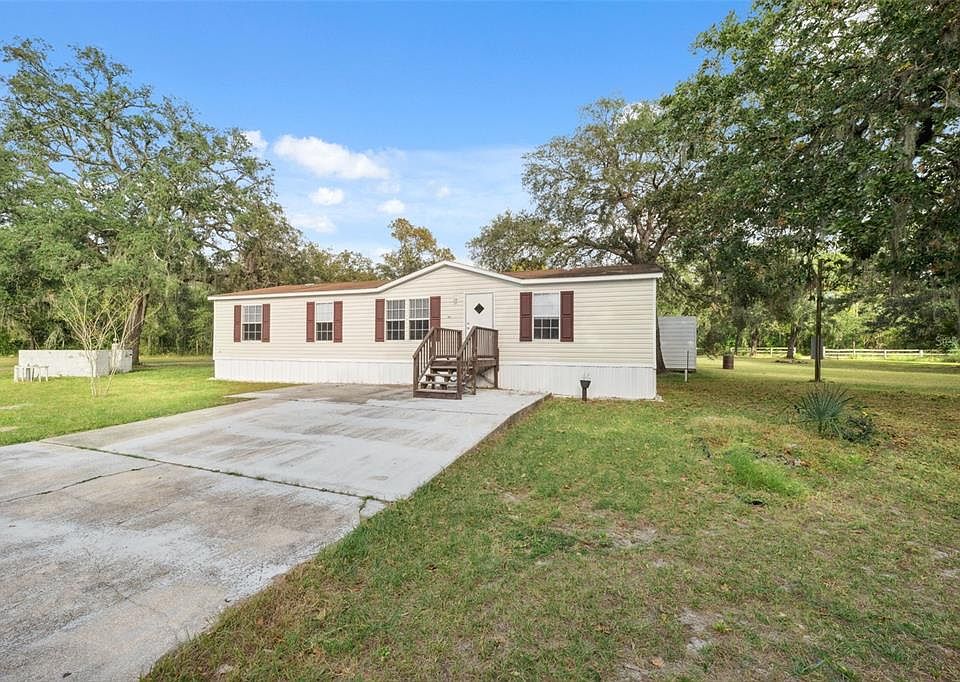 This spacious 3-bedroom, 2-bathroom home sits on an expansive 1.76-acre lot, offering the perfect blend of space and comfort. From the moment you step inside, you’ll immediately notice the meticulous care that this home has received over the years. High ceilings and an open floor plan create an airy, at home feeling. The split floor plan provides privacy, with a primary suite that has a walk-in closet and your own private bathroom. There is also a double vanity, a separate shower, and an oversized tub for you to relax in. The property is zoned AR! No HOA or CDD fees!