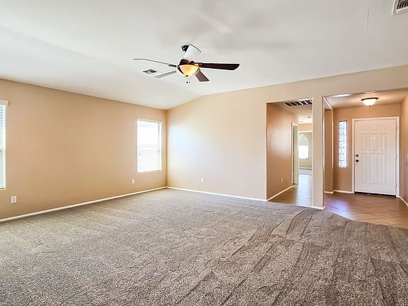 625 minimum credit required. Newly remodeled interior with new paint and carpet! This home has good sq ft for the money and has an XXL park behind it. Great area in Goodyear. Washer and dryer are included! Large utility room, ceiling fans, good sized living area and tiled dining. The kitchen has an island and tiled counters. Security deposit of $1800, cleaning deposit $400, $20 monthly admin fee. Owner prefers no pets (new carpet). Tenant must maintain tenant insurance during their tenancy.