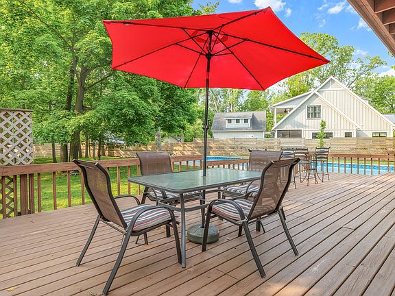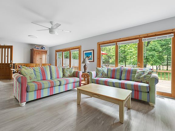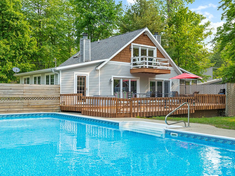 Welcome to Aqua Breeze, a FULLY FURNISHED paradise on 3 wooded lots, and a .05 mile to Townline Beach! Enjoy a heated pool, deck, screened porch, 3 fireplaces, and a spacious yard with games. Relax in the primary bedroom with Jacuzzi and private balcony, plus 2 more bedrooms with sitting areas. The fully-equipped kitchen, smart TVs, gas grill, and firepit make it easy to unwind. Close to downtown amenities.