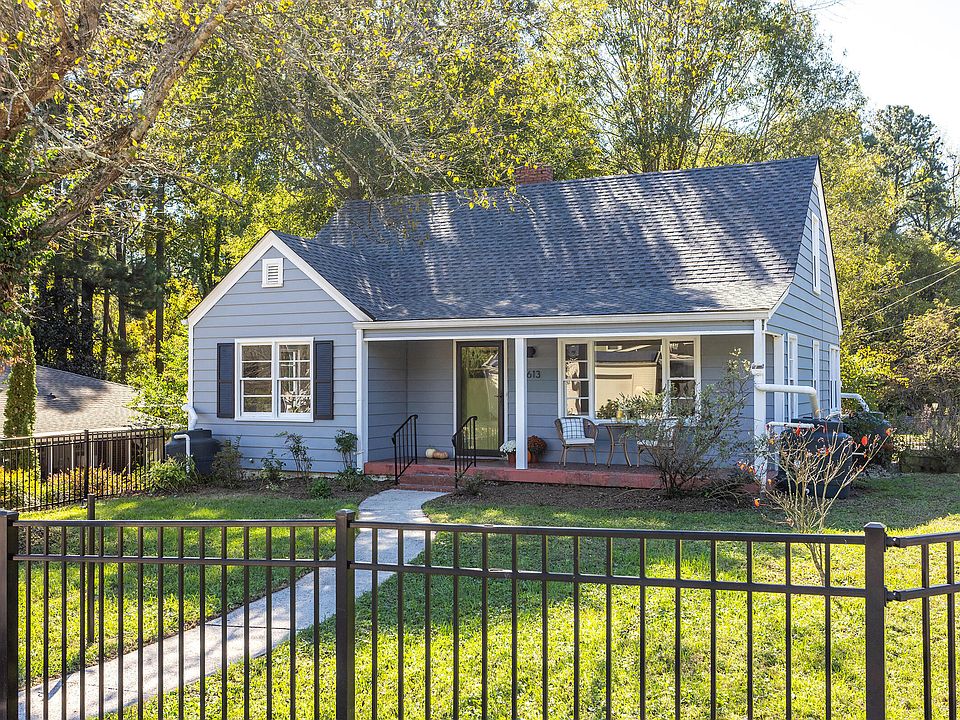 On a sunny corner lot between Lakewood and Forest Hills, this mid-century era Cape Cod blends character, charm, and a prime Durham location. Picture crisp autumn mornings on the front porch, waving to neighbors before starting your day. With a fenced-in yard, new roof and HVAC, and fresh paint throughout much of the home, this one is ready for its next chapter. Inside, you'll find hardwood floors, timeless details, and abundant natural light. The vintage-style kitchen brings plenty of charm, and the unfinished basement (with garage) offers tons of storage or workshop potential, while the second floor is brimming with possibility -- perhaps a dreamy primary suite or creative retreat. You're a short stroll to the YMCA, Cocoa Cinnamon, Lulu & Sadie's, and all things Lakewood. Lyon Park, Forest Hills Park, and Rockwood restaurants are just minutes away, and Downtown Durham and Duke are a ridiculously easy hop from home. Whether you're drawn to the vintage character, the friendly neighborhood feel, or the unbeatable location, 1613 Bivins Street is a gem ready for its next person.