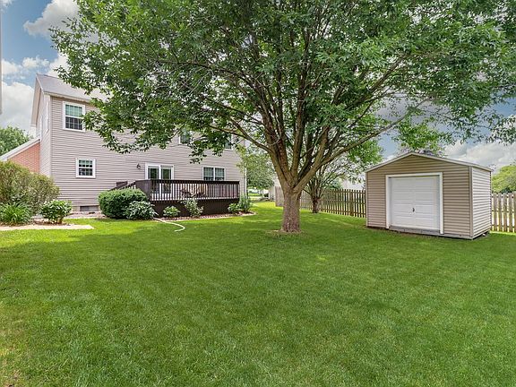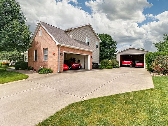 This is a RARE find in the city limits of Normal IL. What makes this house RARE is its 20 X 36 additional garage...YES...additional. There is a 2 car garage attached to the house! This detached oversized garage is the BONUS outbuilding/garage. It has a with a 10ft high overhead door which could fit boats, trailers, 4 cars, motorcycles, class B Motorhome, large workshop, extra room to entertain...whatever it is that you can think of...make it fit your needs! So if you have a lot of toys OR have hobbies that require a workshop THIS is YOUR house!! The home has a front porch that wraps around the side. It would be a great space for a porch swing. The railing on the porch is a Kroy vinyl railing; chosen for its low maintenance and durability. When you enter the home you are greeted by the 2 story foyer. The layout on the main level is open and flows seamlessly. You will notice the gorgeous solid hardwood flooring...they are simply beautiful. The kitchen features Corian counters with a peninsula counter height breakfast bar. There is a walk in pantry for even more kitchen storage. Kitchen: Fridge(2018) Dishwasher (2017) Garbage disposal (2020) Faucets (2018) The tile flooring in the kitchen is new and really brightens up the space. Off the kitchen area is a slider door that leads to the deck that overlooks the mature trees in the backyard which provide nice shade. The upstairs features four bedrooms and 2 full bathrooms. The primary bedroom has 2 walk in closets and and a full bathroom with double vanity sinks, separate shower, and a jetted tub. The basement is unfinished, however the floors are painted and the foundation walls are painted giving it a clean polished look. There is a rough in for a