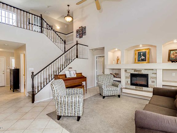 Great home in gated Las Colinas! 4 bed, 3.5 bath property has it all. This home features a 2nd master suite with walk in closet on 1st level, perfect for mother-in-law. With an open floor plan, neutral paint, soaring ceilings, plantation shutters, den and loft great for entertaining. The master bedroom has bay window, full bath, double sinks, separate tub & shower and HUGE walk-in closet. The eat in kitchen has an island breakfast bar and plenty of cabinets with crown molding. Backyard perfect for family gatherings with covered patio and mountain views. Backing up to Highline Canal, with low maintenance landscaping, 2 CG, RV gate, and exquisite curb appeal make this the perfect home. Minutes to hiking, biking, horseback riding, downtown, ASU, Sky Harbor Airport, and shopping. ASU, Starbucks, and Target.