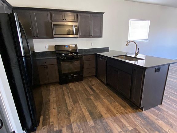 New duplex with only 1 previous tenant for less than one year! Right off Timberridge and walking distance to the middle school. These spacious 3 bed 2 bath townhomes will have their lawn care provided, along with all kitchen appliances. LVP floors throughout, NO CARPET, granite countertops, 1 car garage with electric opener, open floor plan, and washer and dryer hookups (washer and dryer not provided). There will not be any backyard fencing, but a small back patio slab. Large primary suite with walk in closet and walk in shower. Secondary bathroom has standard shower/tub combo. Modern paint colors and black finishes. Floor plans in the pictures. Move in ready now! Schedule your showing today! Renter pays all utilities. First months rent and deposit due at or before move. SMALL ANIMALS with $500 dollar non refundable pet fee. Rent is due on the 1st of each month and a late fee is issued on the 5th day after 5pm. No smoking in unit. Must pick up ALL cigarette butts and animal feces.