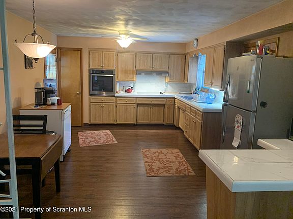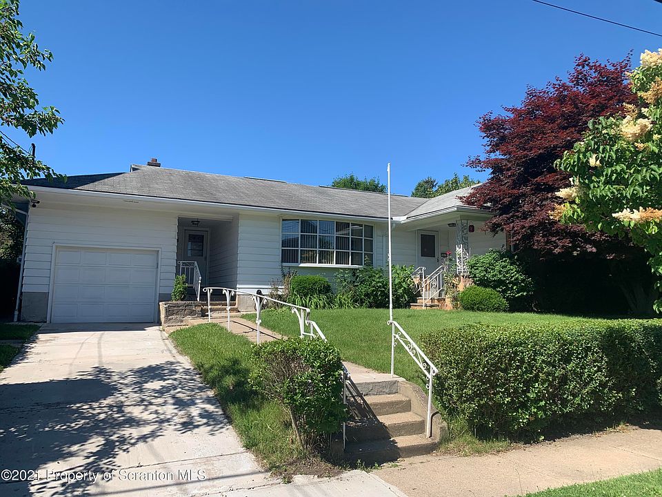 Located in the Tripp Park section of West Scranton, this ranch home offers hardwood floors, ductless air conditioning, a 3 season sun room, swirled ceilings, a finished lower level & all kitchen appliances are included. Aside from the attached garage, this property also features a 24x48 detached garage with 10 ft overhead door.