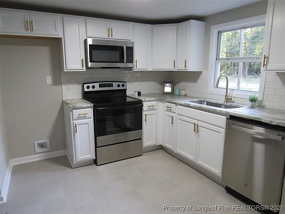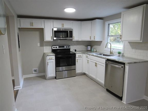 Beautifully updated 2 bedroom 1 bathroom Home in Hope Mills on wooded lot. LVP flooring in Great room. Modern kitchen with stainless steel appliances, tile floor & custom cabinets. TENANT MUST SUPPLY THEIR OWN REFRIGERATOR. Detached garage for extra storage. Must see!
