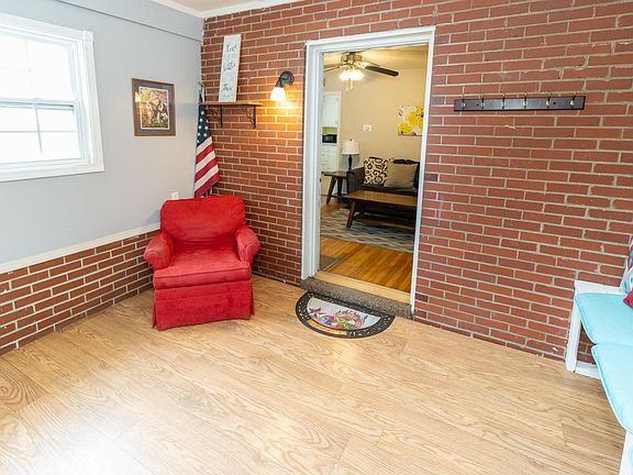 Brick bungalow with an oversized 3 car garage which has entrances in the front and back and a work area. Home boasts built-in/finished front porch that leads into the living room with original hardwood flooring. Off the living room, large eat-in kitchen that opens up to the nice sized, fenced in backyard with patio. Two bedrooms and a full bathroom round out this cozy home. HVAC 2021