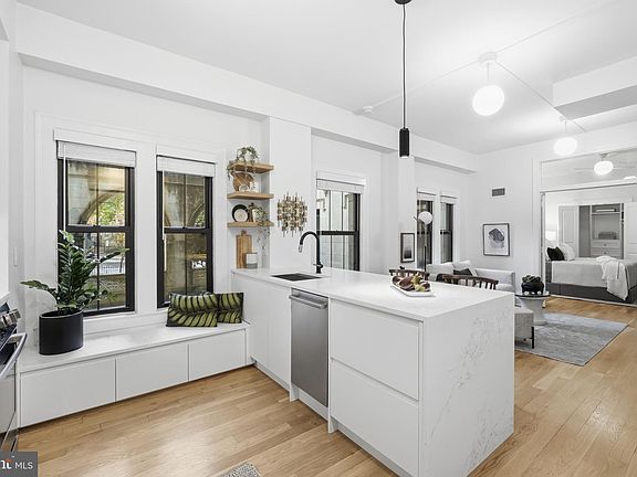 This beautifully renovated residence offers thoughtfully designed space where quality materials and modern craftsmanship shine. Elevated from the street and overlooking an expansive, walled courtyard, the home enjoys a rare sense of privacy and openness in the heart of the city. Completely reimagined in 2020, the kitchen and bath were gutted and rebuilt with exceptional attention to detail. The kitchen features quartz countertops, frameless Elmwood cabinetry, and a full suite of Bosch appliances—including a washer and dryer discreetly housed in a dedicated laundry walk-in. Every fixture and finish was selected for harmony and refinement: Buster & Punch switches and matching cabinet hardware, Niveous pendant lighting, and a Ball ceiling fan by Modern Fan Company all contribute to the home’s polished, contemporary character. The bath is an elegant retreat, finished with full-height vertical tile for a clean and timeless aesthetic. Light, proportion, and craftsmanship come together to create a home that feels both modern and enduring. Set within a classic pre-war building, residents enjoy a grand lobby that reflects the building’s original architectural grace, along with two elevators, a well-equipped fitness room, and a dedicated bike storage room. Just off Mount Pleasant Street, the property enjoys immediate access to one of D.C.’s most vibrant neighborhood corridors—lined with independent cafés, restaurants, and local favorites including Elle, Beau Thai, Haydees, and Dos Gringos. The Mount Pleasant Farmers Market enlivens weekends, and nearby Rock Creek Park offers a natural sanctuary just moments away. A perfect blend of design, comfort, and community—this elevated residence offers a truly refined take on Mount Pleasant living.