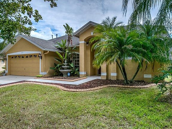 Paradise is the only word to describe this gorgeous 3 bed / 2 bath / 2 car garage pool home in beautiful Providence Lakes. This beautiful lakefront home will knock your socks off. The curb appeal is wonderful w/ the beautiful entry way fountain, decorative curbing around the trees, and the tropical landscaping. The spacious master has sliders overlooking the large covered lanai, the beautiful pool, and the gorgeous lake. The master bath features 2 sinks, garden bath tub w/ jacuzzi jets & a separate shower. The home features very high cathedral ceilings, working fireplace, split bedroom plan for privacy, granite counter tops & maple cabinets in the kitchen, solar heated pool, pool safety fence, automatic pool cleaner, very large lanai, irrigation system and a huge backyard overlooking a gorgeous lake, and much more. NO CDD FEES. Not in a flood zone. MUST SEE!!!