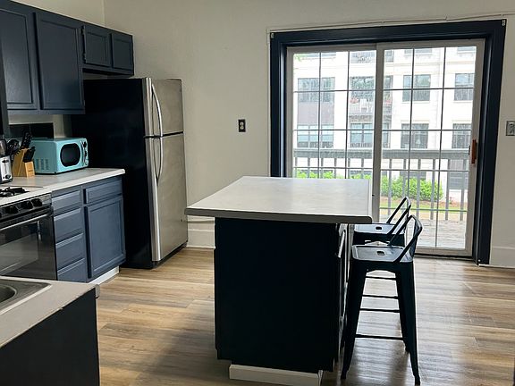 Unit has hardwood flooring, breakfast nook with an eat in kitchen along with a center island, stainless steel full size refrigerator, crown moldings, custom built in closets, balcony with a view of the city, and in-unit washer/dryer!