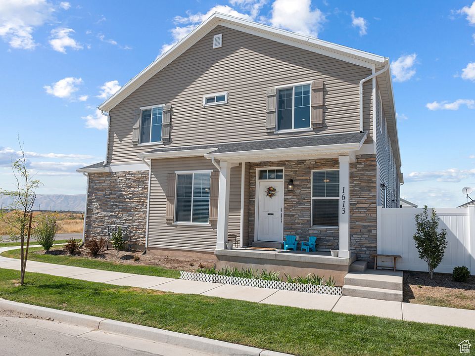 Welcome to this GEM of a townhome with no common walls or joists, front door unobstructed views of the mountains & pocket parks for kiddos within a 2 minute walk. This home is complete with 9' ceilings, a full wall of built-ins in the upstairs loft area, an extra attic space & private fenced backyard. Is this even a townhome?! Come see for yourself everything this Salem residence has to offer! Layout is called the "Maine" built by Georgetown Builders and is the largest available! All information, figures, and documentation provided as a courtesy, buyer to verify all information.