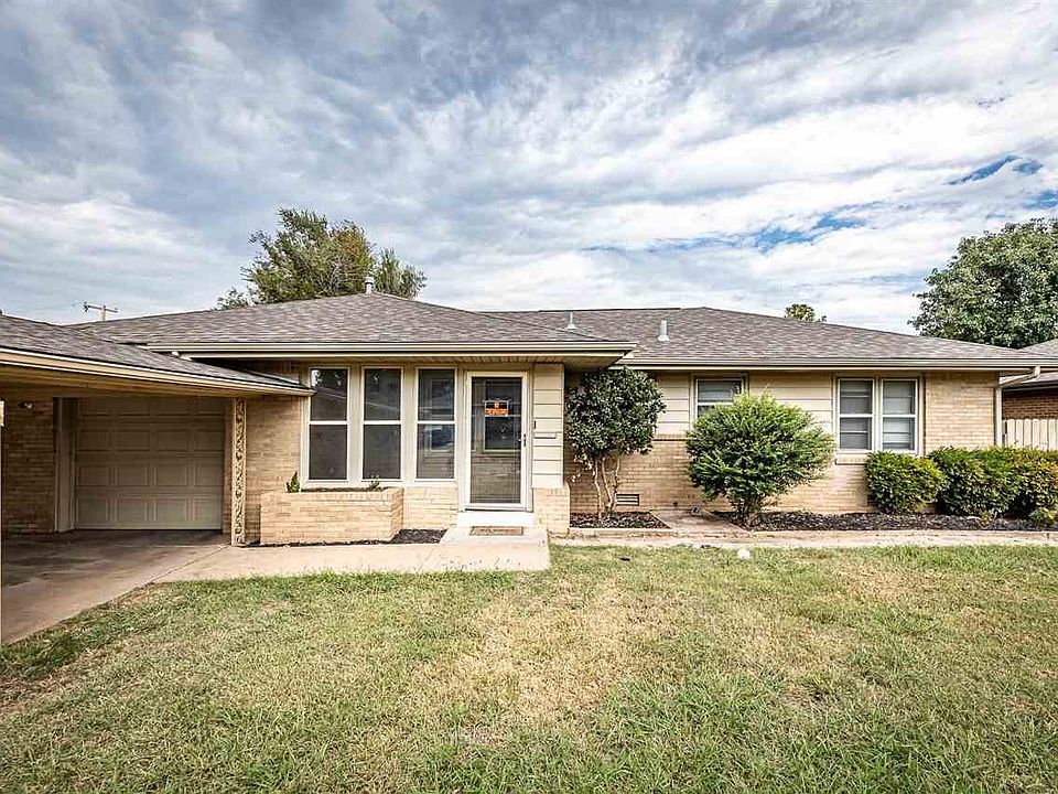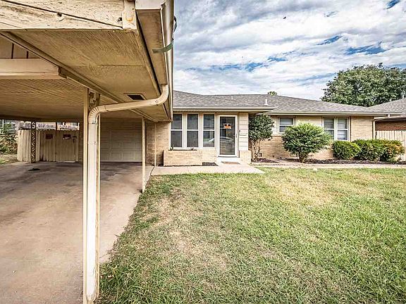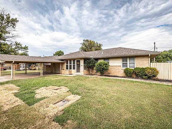 For information or a private showing call Real Estate Experts LLC at 580 248 2600 or visit staceandreedy.com. This 3-bedroom home is 1600-1700 square foot with 2 living rooms, 2 car driveway with carport, oversized 1 car garage and huge covered patio. The first living space is a good size and has wood flooring and French doors leading to the second family space which has new carpet and a wood burning fireplace. In the kitchen you will enjoy alt the space for cooking with cabinets and counter space galore, built-in buffet, double ovens and cooktop. Off the kitchen is a Large laundry room with in-ground storm shelter. All, bedrooms are a good size and the primary has a ½ bath. Out back is perfect for entertaining or just being outside to relax under the covered patio. This home is very well cared for and will make a great home.