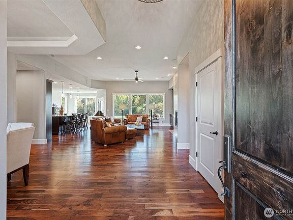 Gated community, single level home on 2.43 Acres in Battle Ground. Craftsman home with lots of natural light, 3 bedrooms, office, 2.5 baths and a luxurious primary suite with spa-like bath, soaking tub, walk-in shower, dual sinks and a walk-in closet. The open-concept great room features expansive windows, a cozy fireplace, and seamless flow to the gourmet kitchen, complete with high-end appliances, double ovens, large island, and walk-in pantry. Outside features a built-in BBQ and large covered patio for all year long entertaining! Enjoy beautifully landscaped grounds offering privacy and room to expand. The oversized garage, RV/shop bays provide ample storage for vehicles, tools, and toys. Located just minutes from downtown Battle Ground.