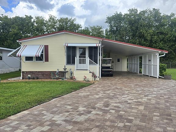 Stunning Gem in Seminole Cove 55+ Community!Offers comfort, style and peace of mind with thoughtful upgrades throughout. Featuring an open concept layout. You will enjoy vaulted ceilings with ceiling fans, abundant light, and a spacious formal dining room perfect for entertaining. 2Bed-2Bath, Furnished & turnkey, Metal roof for long-lasting durability. New thermo windows for energy efficiency, New flooring-re carpeted bedrooms, kitchen completely redone with soft close cabinets and SS appliances. AC 3 yrs old & Hot water heater 5yrs old, Generator 2 yrs old. includes: extra refrigerator, freezer, air compressor, & golf cart. Tie downs just replaced, irrigation system recently redone. Beautifully paved all around the home. Public water & sewer. Community has a heated pool, clubhouse&more.