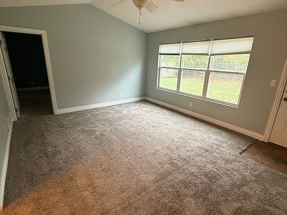 Open floor plan with a large master suite with double sink vanity and a walk in closet. Large fenced in backyard.