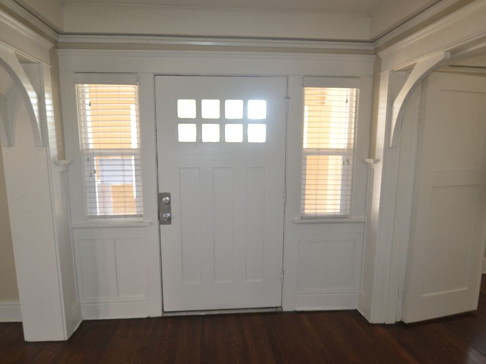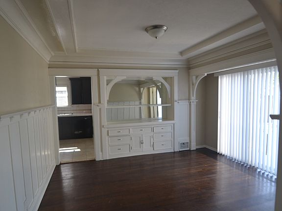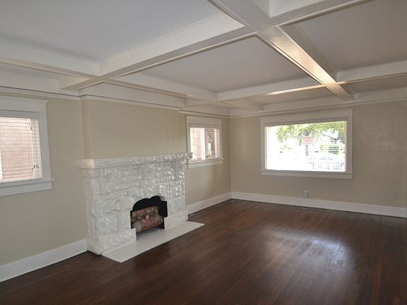 This incredible 1911 two story 5 bedroom, 2 bath home situated on a large lot has 2,417 square feet of comfortable living space and great curb appeal thanks to the mature trees and low-maintenance landscaping out front. The front of the property features a stoop and covered porch. The interior boasts two-toned paint, spectacular decorative molding detail, built ins, hardwood, tile, and plush carpet floors, a grand staircase and picturesque windows. The living room has hardwood floors and a fireplace for those cozy evenings at home. The kitchen has beautiful tile floors, white tile counter tops, contrasting dark wood cabinets, and black appliances. The dining room off the kitchen features a built in cabinet with drawers and sliding glass doors with access to the backyard. Magnificent wood staircase leads to the upstairs bedrooms. Bedrooms are comfortable with plush carpet, large closets and oversized windows. Master bedroom includes a huge bay window, window seat, plush carpet and larg