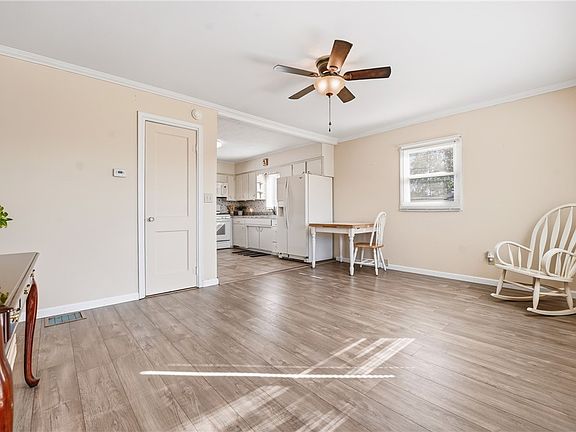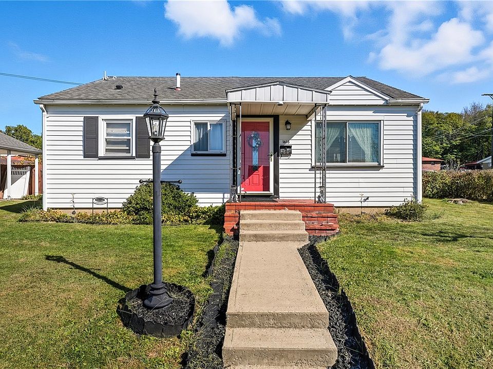 This darling, move-in ready 1950’s ranch home extends a warm welcome, like that of an old friend. Step inside to living space that feels warm and connected, with sunlight filtering through newer windows. The bright and beautiful living room is grounded with new wood-look flooring and open to the delightful eat-in kitchen. White flat-panel cabinetry and a trendy original tile backsplash capture the essence of its mid-century roots and newer countertops and flooring add the perfect compliment and a modern lift. The beautiful bathroom continues the modern aesthetic. With potential for more than just storage, the full basement is a pleasant surprise. It’s neat, clean, and organized and already has a half bath in place. Even better, this home comes equipped with so many essentials from all appliances to a lawn mower and yard tools. Everything about this place says welcome home.