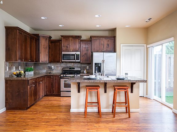 GORGEOUS! Move-in ready home with 4 bedrooms + office on a cul-de-sac surrounded by paved walking trails and neighborhood parks with basketball hoops, a playground, fenced dog park and more! Near the Clackamas River and Carver Park and boat launch. The dramatic two-story entry leads to the great room--you'll love the open floorplan seamlessly connecting the living & dining rooms to the island kitchen. Get cozy in front of the gas fireplace in your living room! Your island kitchen features granite counters, a pantry and a slider to the back patio with a beautifully-landscaped and fenced yard with garden shed. The private office and a half bathroom are off the entry on the main floor and create the perfect work-from-home set-up. Upstairs you'll find a large primary suite with walk-in closet, double sinks, walk-in shower and separate soaking tub. Also on the second floor, you'll find three more bedrooms, a second full bathroom and a convenient laundry room. The 4th bedroom is so big that it could be a bonus/family room. A gas furnace, central AC, BRAND NEW CARPET, all appliances included + sought-after North Clackamas schools--check all your wish list boxes!