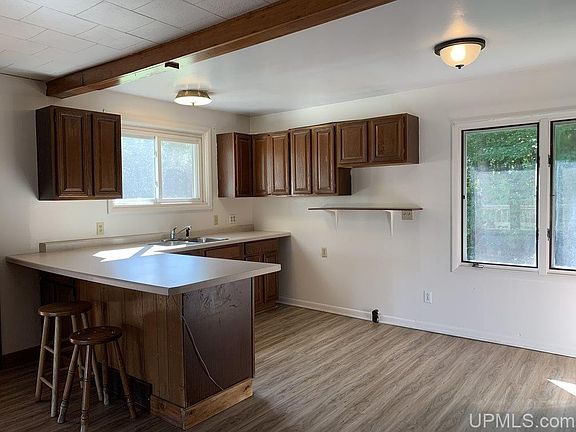 Country home located just outside of the Village of L'Anse! This two bedroom and one bath home features an open kitchen living and dining room, full walkout basement, nice front deck and an oversized 1-car garage. This is sort of a split-level entry with a few short steps up into the living space and almost a full flight down to the basement. It's in move in condition. There's new flooring and fresh paint. The home sits on just under 1 acre of land. Great location for this just out of town home!