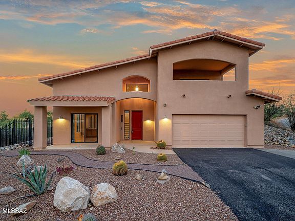 Welcome to this 3-bedroom, 2.5 bath, custom-built home in Catalina, AZ. This meticulously-maintained property offers soaring high ceilings, an open, airy layout, and many windows framing breathtaking mountain views. The kitchen has stainless appliances & granite counters, and the downstairs primary suite features a soaking tub, separate tile shower & a large walk-in closet, along with a sliding door to access the fenced-in backyard. Upstairs, each guest bedroom has a private balcony, perfect for sunrise coffee or evening sunsets. A spacious two-car garage provides convenience, while the home's thoughtful placement away from through traffic creates a peaceful setting. No HOA, on a .84 acre lot! HVAC & water heater have been recently updated. Schedule a tour today and come enjoy the views!