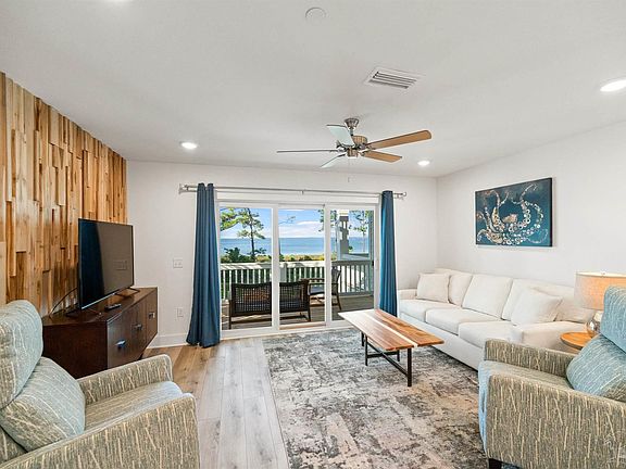 Experience coastal luxury in this stunning 1,818 sq ft, 3-bedroom, 3-bathroom end-unit townhome, fully furnished and ready for you to move in. Rental projections between $56,00-$76,000 make this a deal you wont want to miss. Whether you're looking for a primary residence, a vacation getaway, or a lucrative rental property, this turnkey home offers it all. Stunning views of Perdido Bay from either of the spacious balconies. Modern stylish decor, stainless steel appliances, luxury vinyl plank flooring, stained wooden accent wall, and quartz countertops create an elegant and comfortable living space. Also located on the main floor is a spacious guest bedroom and full bath. The primary suite boasts a private balcony with double sliding glass doors, a spacious en-suite bathroom with dual vanities, a beautiful tile shower, a private water closet, and a large walk-in closet. Conveniently located upstairs is an additional bedroom, bathroom, and a spacious laundry room. On the ground level, you'll find extra storage adjacent to the covered two-car carport. This townhome is part of Phase II of the Innerarity Townhomes, a newly completed development offering fantastic amenities, including a heated community pool, bay access with a beach area, a dog park, and a fitness center. Enjoy an easy stroll on the newly built boardwalk to the community pool or beach. With short-term rentals permitted, this property is an excellent investment opportunity. Buyer to verify all informationduring due diligence.