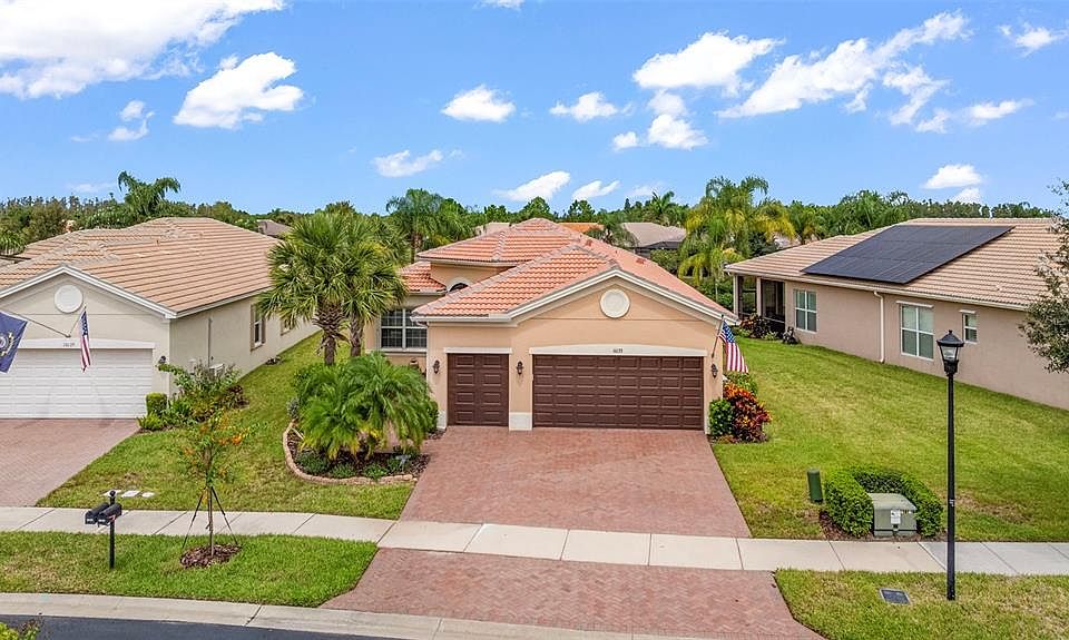 Experience Luxury Living with Unmatched Resort-Style Amenities in Valencia Lakes! Welcome to the Florida Lifestyle you’ve been dreaming of. This highly sought-after Palazzo model offers not just a home, but a true Florida experience in Valencia Lakes, which is Tampa Bay’s premier 55+ Resort-Style Community. Whether you’re looking for your Forever Home or a Seasonal Retreat to escape the cold, this elegant residence delivers the perfect balance of sophistication, comfort, and leisure. From the moment you step through the grand 8-foot impact glass double doors, you’ll be captivated by the soaring 11-foot coffered ceilings, sun-drenched open spaces, and the effortless flow between the Great Room, Chef’s Kitchen, casual dining, and formal dining areas. Entertain with ease or simply relax as triple sliders draw your eye out to the extended screened lanai, where sparkling water views and stunning sunsets create a picture perfect setting for coffee at dawn or cocktails at dusk. The Chef’s Kitchen is a showpiece that includes granite countertops, 42" custom cabinetry, under-cabinet lighting, designer backsplash, and premium appliances all come together to inspire your culinary creativity. For holidays and special occasions, the formal Dining Room is just steps away, adding a touch of elegance to every gathering. Your Primary Suite Retreat is a sanctuary, complete with water views, coffered ceilings, and dual custom walk-in closets. The spa-inspired Ensuite pampers you with dual vanities, a makeup station, granite finishes, and a walk-in shower with built-in seating. Two spacious Guest Bedrooms are tucked away for privacy, while the versatile den with custom built-ins is perfect for an office, library, or creative space. This Beautiful Home is filled with thoughtful extras that include: high-impact windows, custom hurricane shutters; gutters; designer lighting; built-in closets; water softener; reverse osmosis system; an oversized 3-car garage with storage racks, insulated door; an air conditioned-garage; a utility sink and cabinets in the Laundry Room; and an extra freezer/refrigerator in the Garage. This beautiful Home is offered partially furnished (Primary Bedroom furniture and Office bookcase and credenza) and is move-in ready! Beyond your front door lies the Resort-Style Lifestyle of Valencia Lakes: a 40,000 sq. ft. clubhouse, 24-hour fitness center, sparkling pools, tennis, pickleball, bocce, bistro café, live entertainment, arts & crafts, cooking classes, and endless social clubs. Every day feels like a vacation in this vibrant, active community. Don’t just dream it, live it. Situated close to great shopping, restaurants and the Beautiful Gulf Coast Beaches, this extraordinary home is the opportunity you’ve been waiting for. Schedule your private tour today and see why Valencia Lakes is the perfect place to call home.