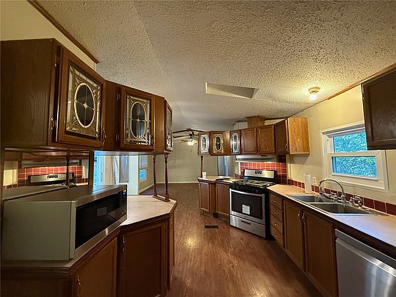 Welcome to Flint Ridge ! Peaceful retreat to Live simply ! and simply live! surrounded by woods. Cool mornings on 1.15 acres m/l. Single wide mobile home has 3 bedrooms, 2 baths. All appliances stay which include gas range, refrigerator, microwave, washer/dryer combination. New flooring , new windows, and sliding glass doors. Flint Ridge has The Illinois River , Pine Ridge Clubhouse, Sycamore Park, Playground, tennis courts, pool, golf course, and putt putt golf too! Private gated community with 24 hour security. Property Owner Association dues of $105 monthly