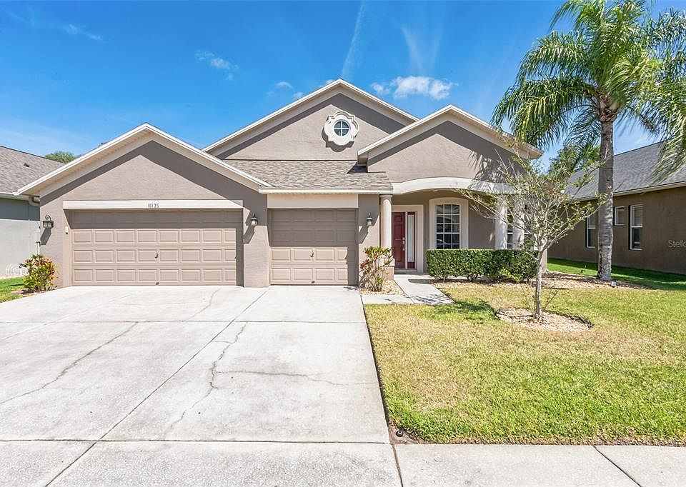 Here it is, what you have been looking for! An UPDATED, POOL home on a gorgeous CONSERVATION LOT, and a CUL DE SAC street, in the beautiful GATED community of Ivy Lake Estates. This is an ever popular SPACIOUS 4 bedroom 2 bath split floor plan with a 3 CAR GARAGE. ENTERTAINING is a breeze in this home, as you enter the LARGE LIVING/DINING room area greets you and is currently being used as a really nice game room with a pool table and shuffleboard set up. (Pool and shuffleboard available for purchase - the pool table converts to a dining room table) . Come on in a little further to the NEWER redesigned, OPEN kitchen with white cabinetry and appliances. You will notice the stunning stone counter top and backsplash with lots of counter space. The indoor laundry room is steps away. The kitchen is open to the LARGE FAMILY ROOM with GORGEOUS VIEWS OF CONSERVATION and the SALTWATER POOL. The pool features a WATERFALL and an EXTENDED TRAVERTINE LANAI. The primary bedroom also overlooks the pool area and comes complete with a beautiful en-suite bathroom with a GARDEN TUB and a WALK-IN SHOWER, DUAL VANITIES & LINEN CLOSET. Two secondary Bedrooms Share a FULL BATH. A fourth room also overlooks the pool area and could potentially be used as a home office. ALL of the flooring in the home is newer with virtually maintenance free WOOD LOOK TILE in the living areas of the home. Roof/WH were replaced in 2017, New AC was put in June 2022. There are solar panels that are transferable to the new owners: ask me for details. Some furniture will remain with home. Ivy Lake Estates has no CDD fees, 2 parks, is beautifully maintained and is 5 minutes to the Suncoast Parkway making you 25 minutes to Tampa Airport and Westshore business District, easy access to 275 to downtown. Stores and groceries nearby.