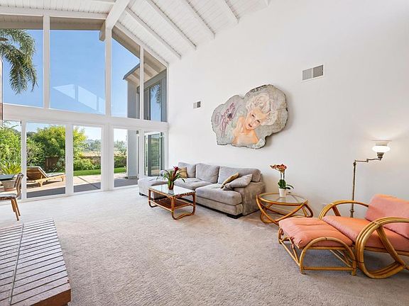 Welcome to this stunning, single-level oasis, nestled in a private setting with no rear neighbors, providing the ultimate in serenity. Just off the golf course, this home boasts floor-to-ceiling windows in the living, dining, and family rooms, bathing the interior in natural light and creating a seamless connection with the outdoors. A formal dining area, sunny breakfast nook, and bright living and family rooms—complete with a cozy fireplace—make this home an entertainer's dream. The brand new kitchen features sleek cabinets, Caesarstone countertop with waterfall edge, a Fisher Paykel built-in fridge, Bosch dishwasher and a gas range. The spacious primary suite, complemented by cathedral ceilings, offers a retreat-like ambiance, while the beautifully remodeled bathrooms and thoughtful layout provide comfort and style. Step outside to a generous patio, perfect for hosting gatherings, overlooking a meticulously maintained lawn and a vibrant garden that adds a splash of color year-round. The home has been meticulously maintained to include new paint inside and out as well as new roof. Experience resort-style living in the desirable La Valle Coastal Club (formerly Morgan Run) community, just a short walk from the golf course and clubhouse. This home combines luxury, tranquility, and convenience, ready for you to move in and enjoy.